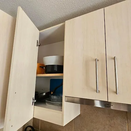 Guests can cook their own meals in a fully-fitted kitchen. The apartment also offers a swimming pool on its balcony.